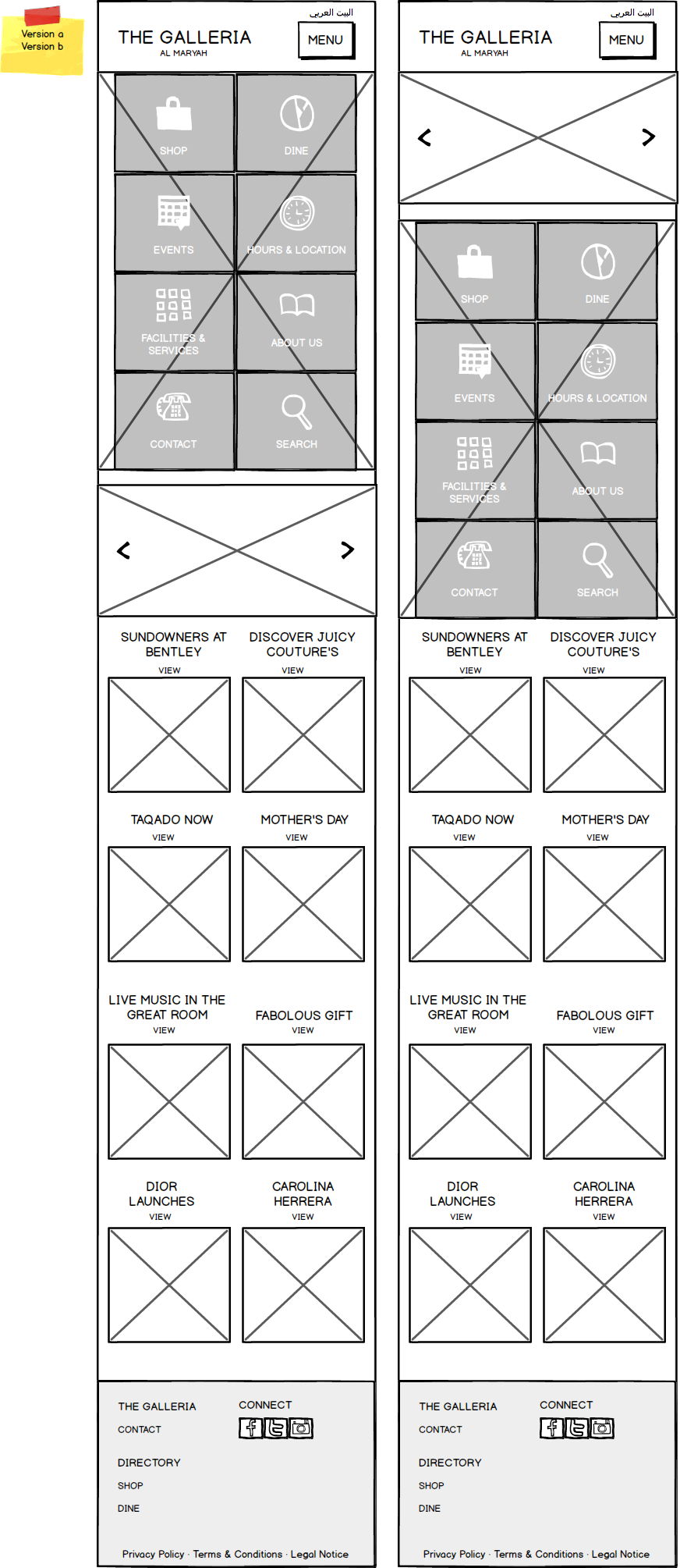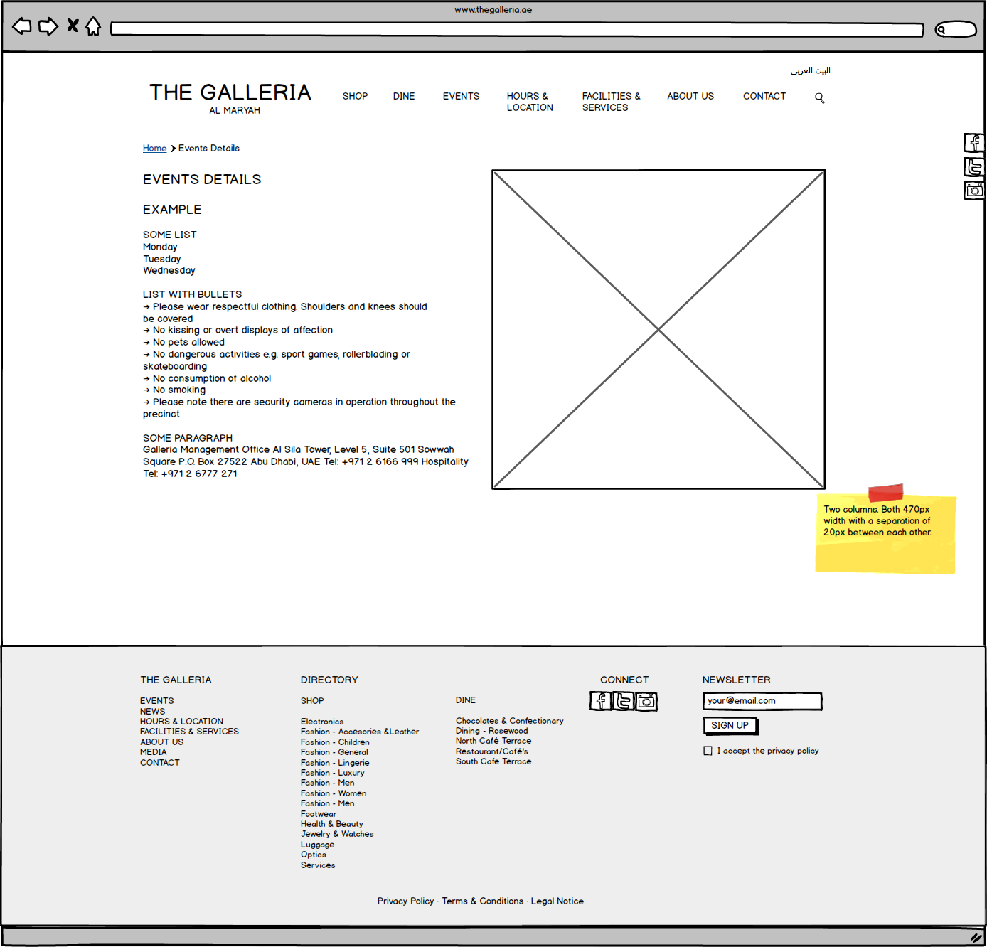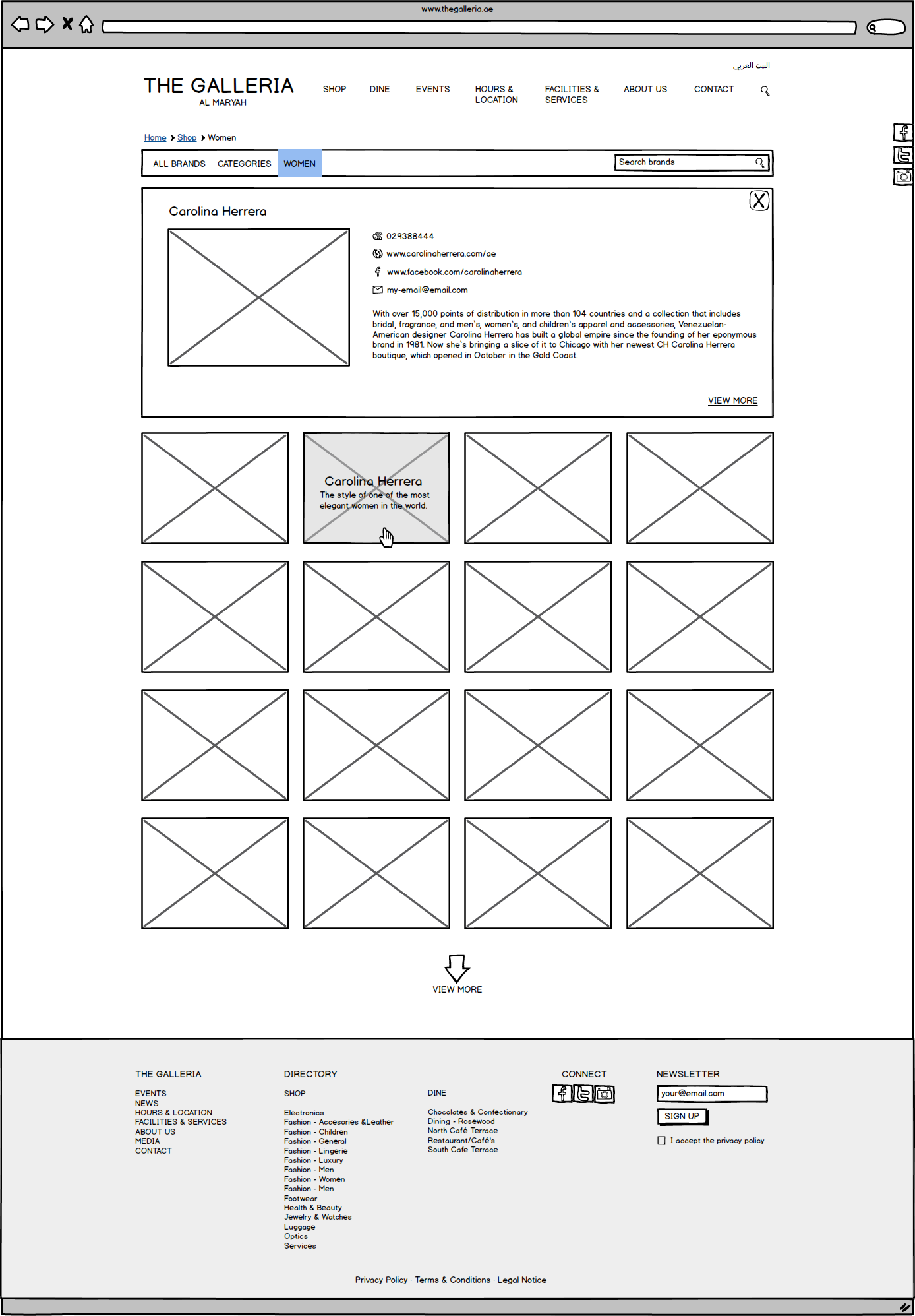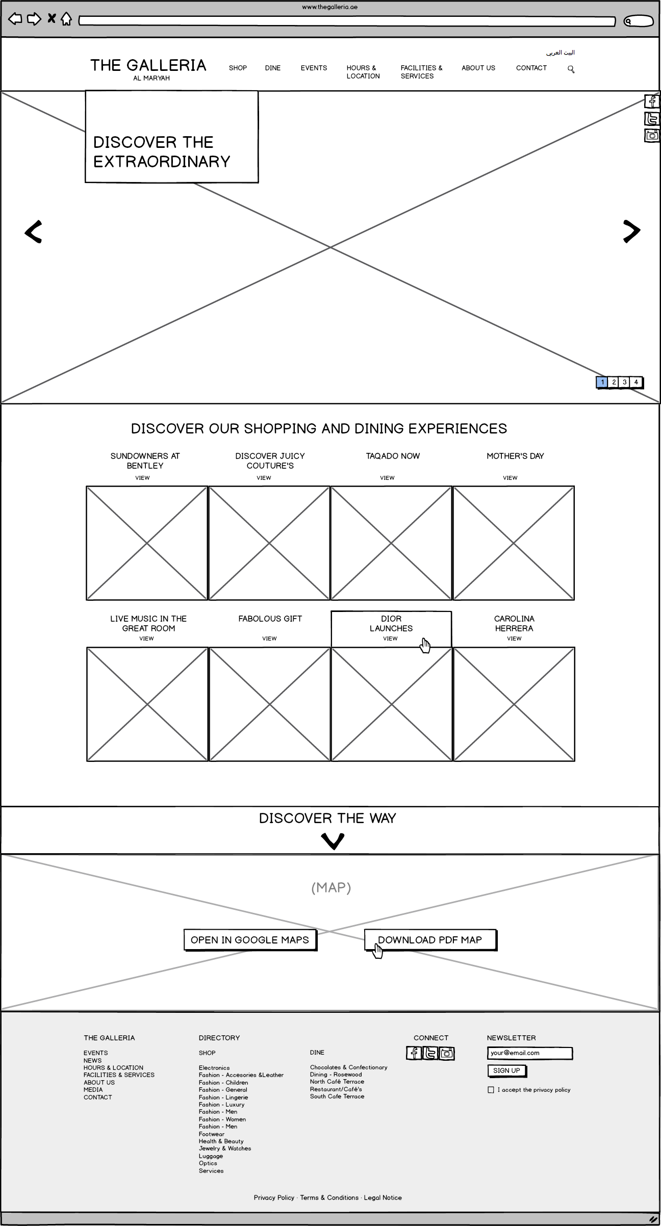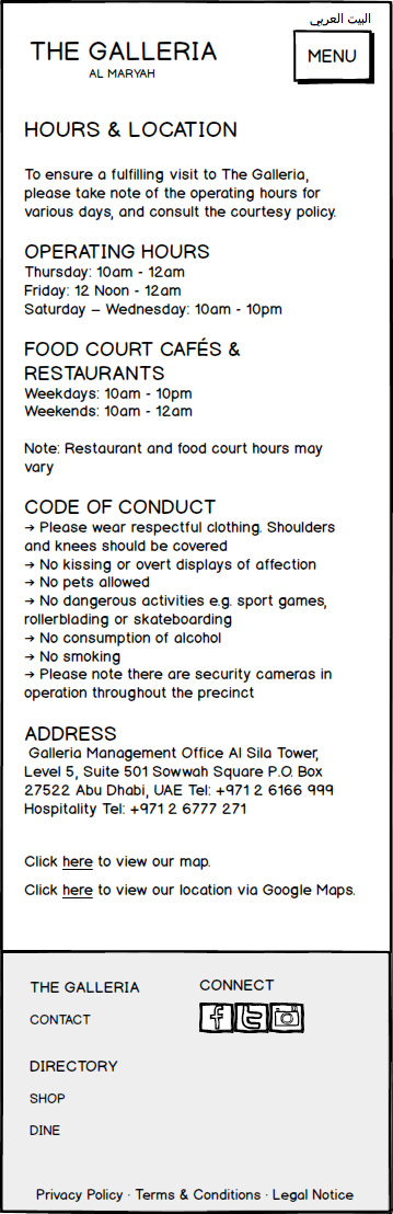 Galleria Mall Website Wireframes