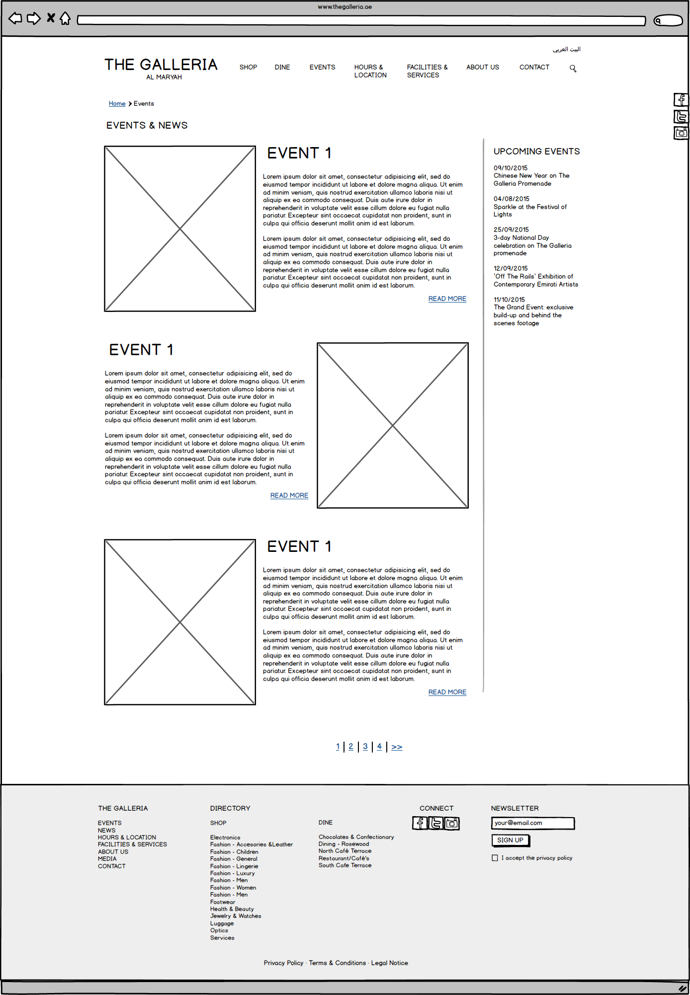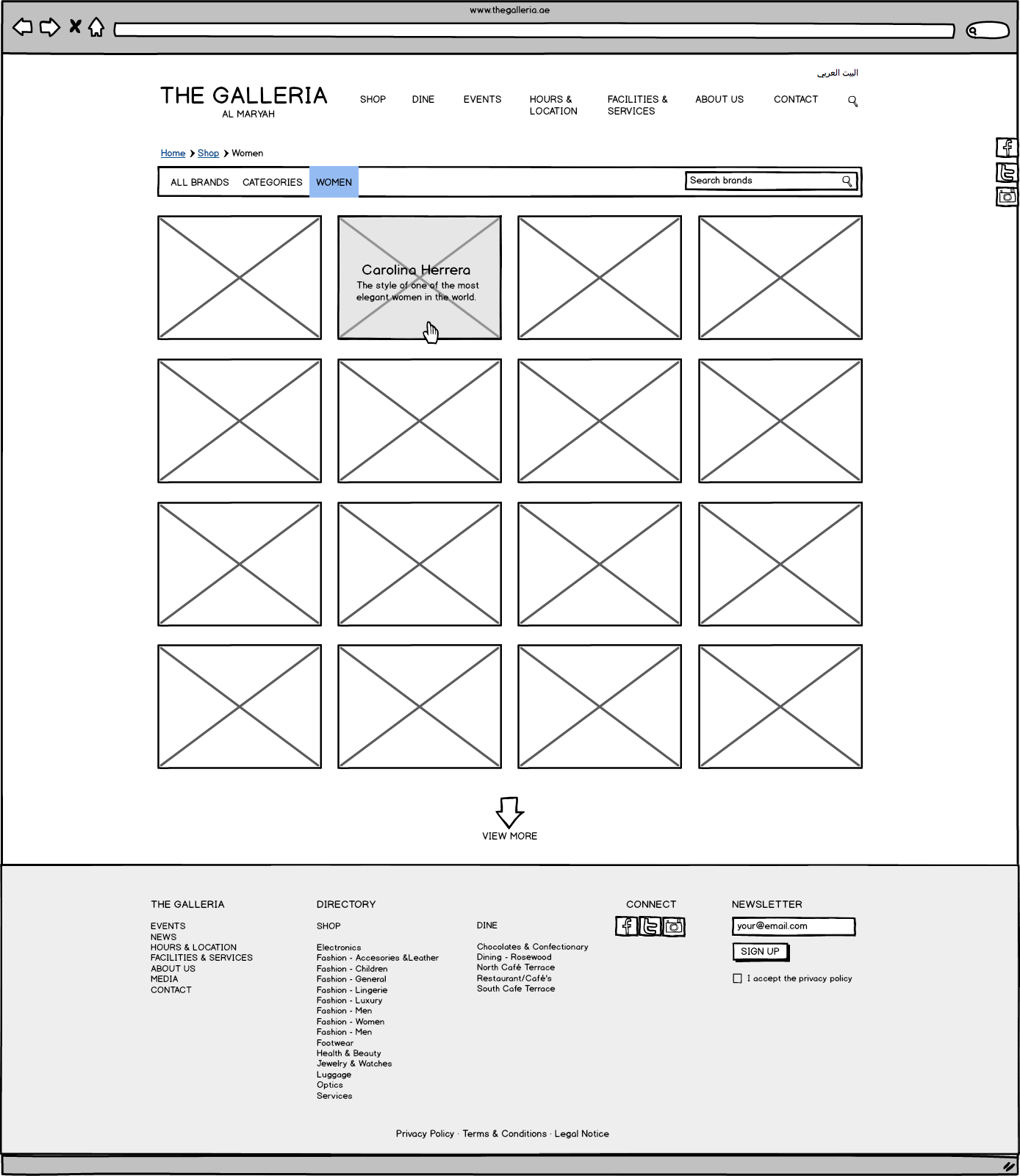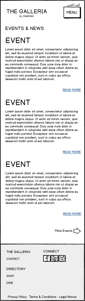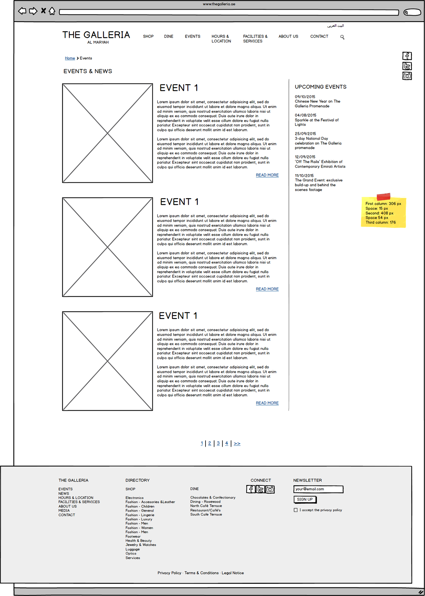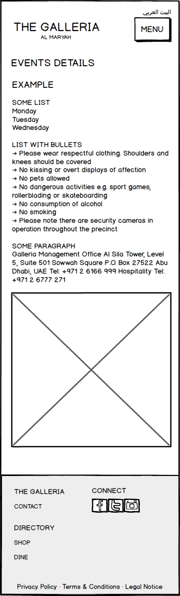 Galleria Mall Website Wireframes