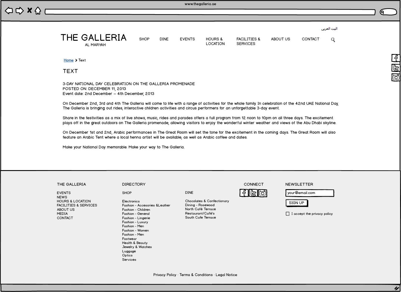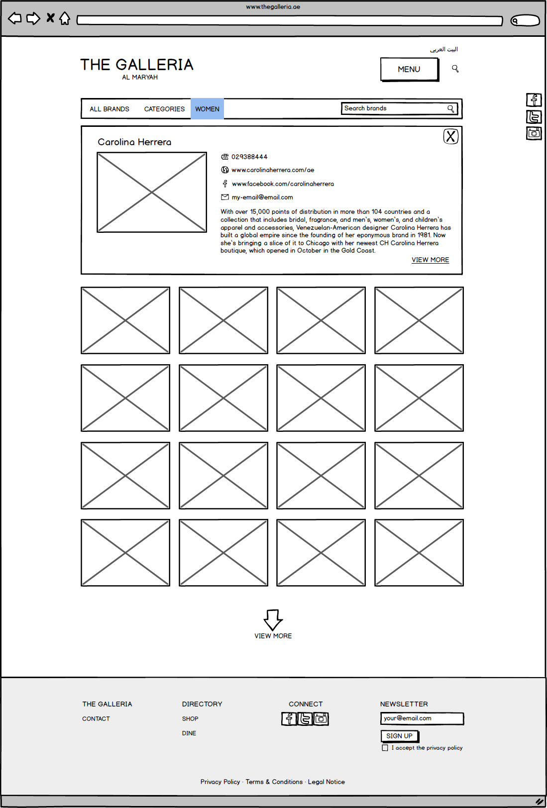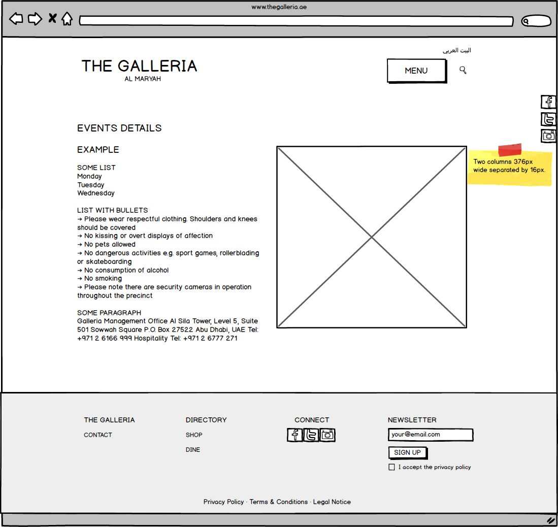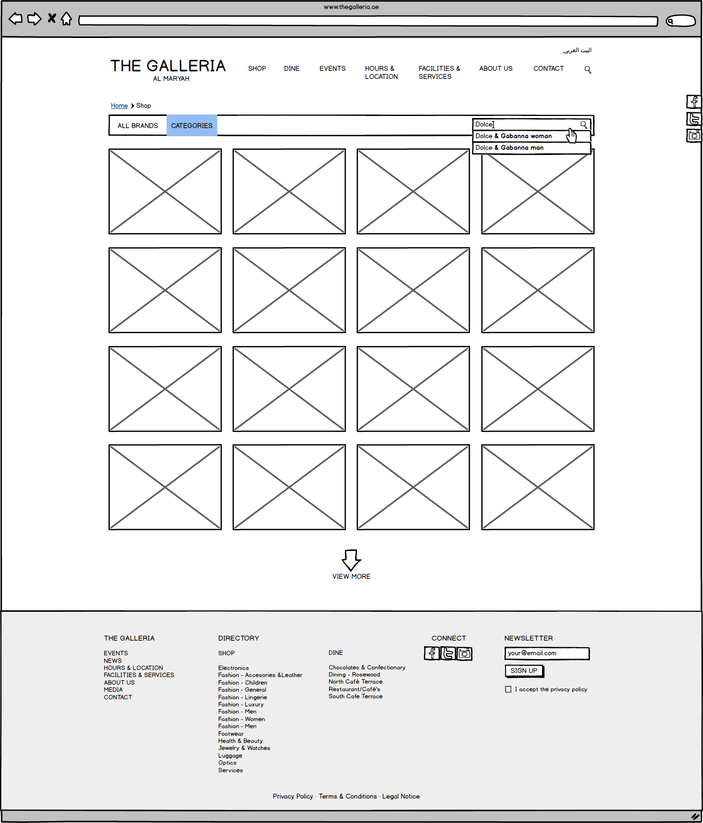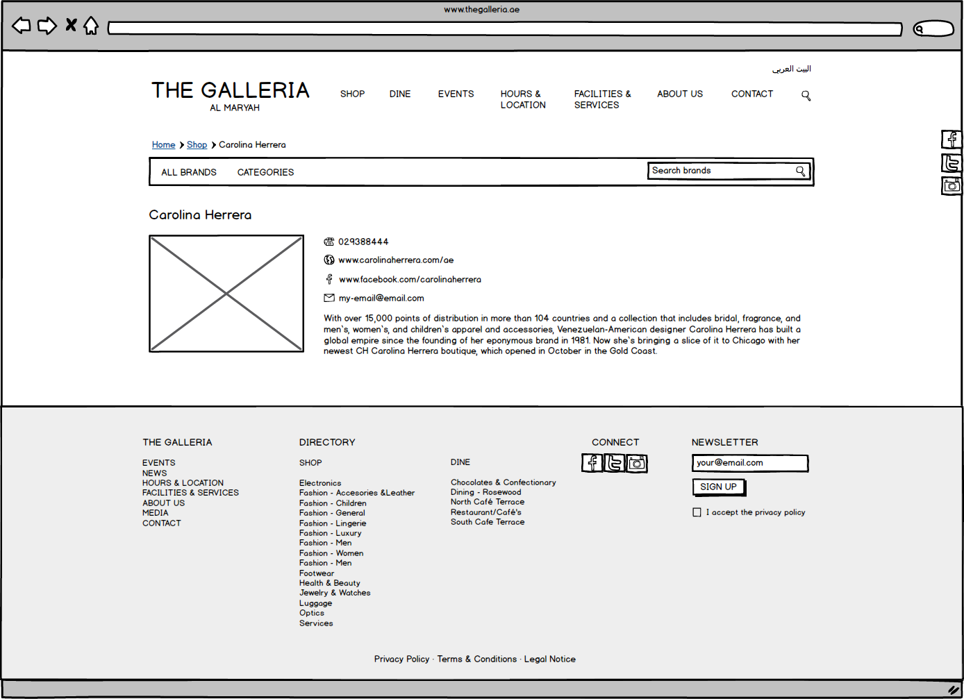 Galleria Mall Website Wireframes