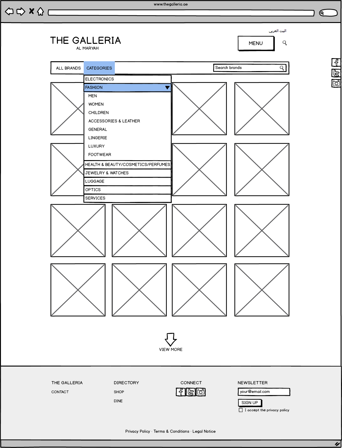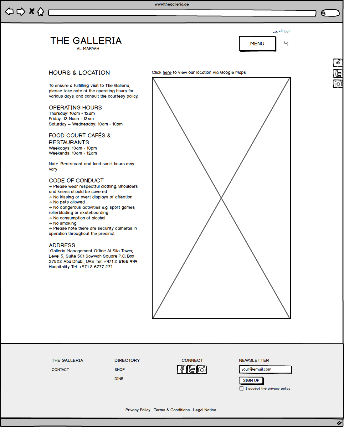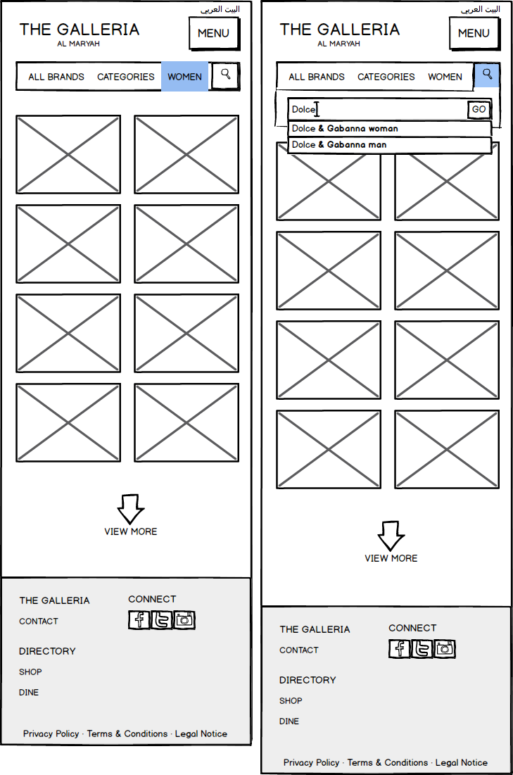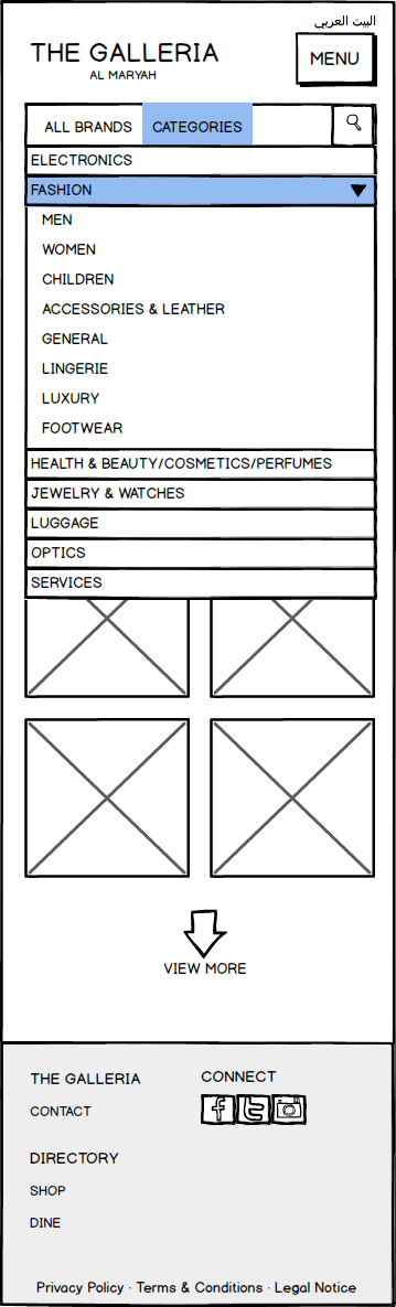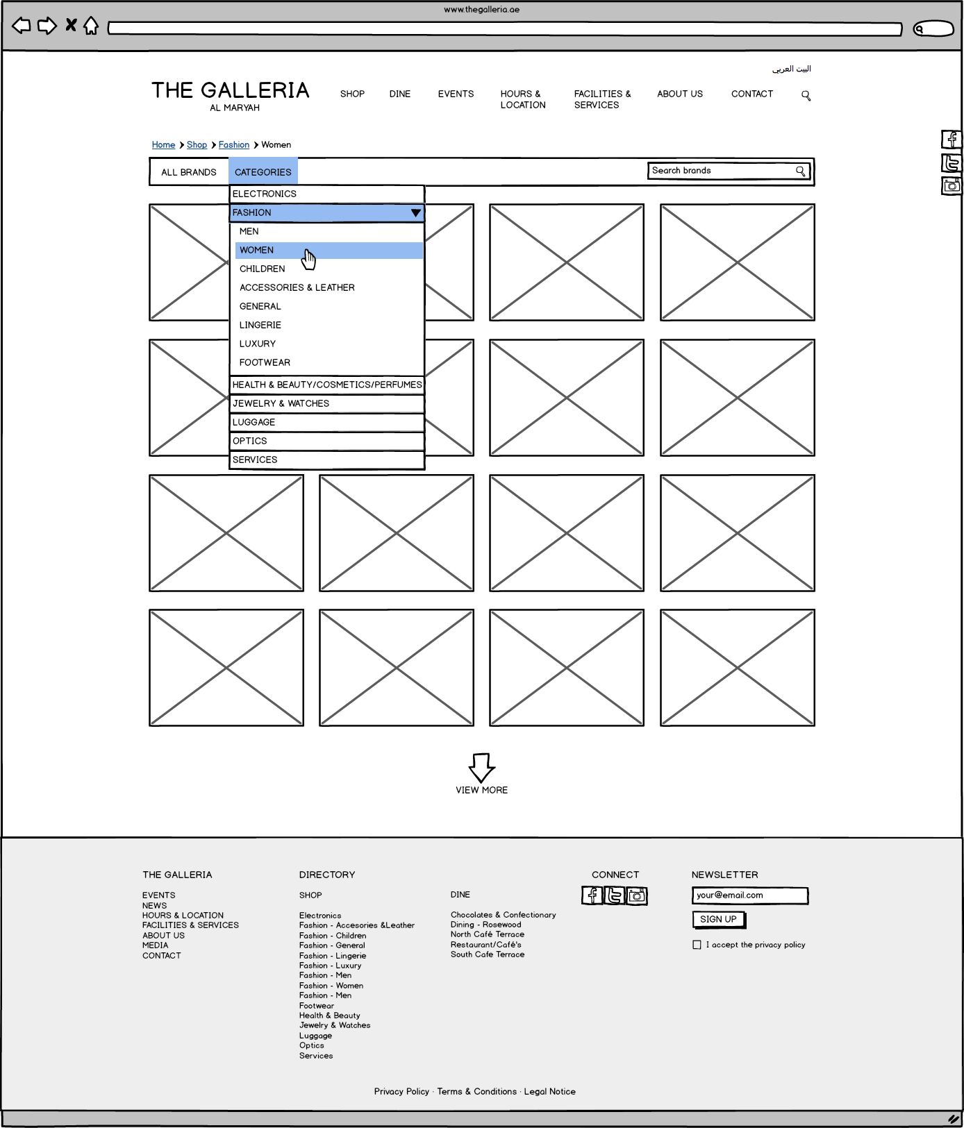 Galleria Mall Website Wireframes