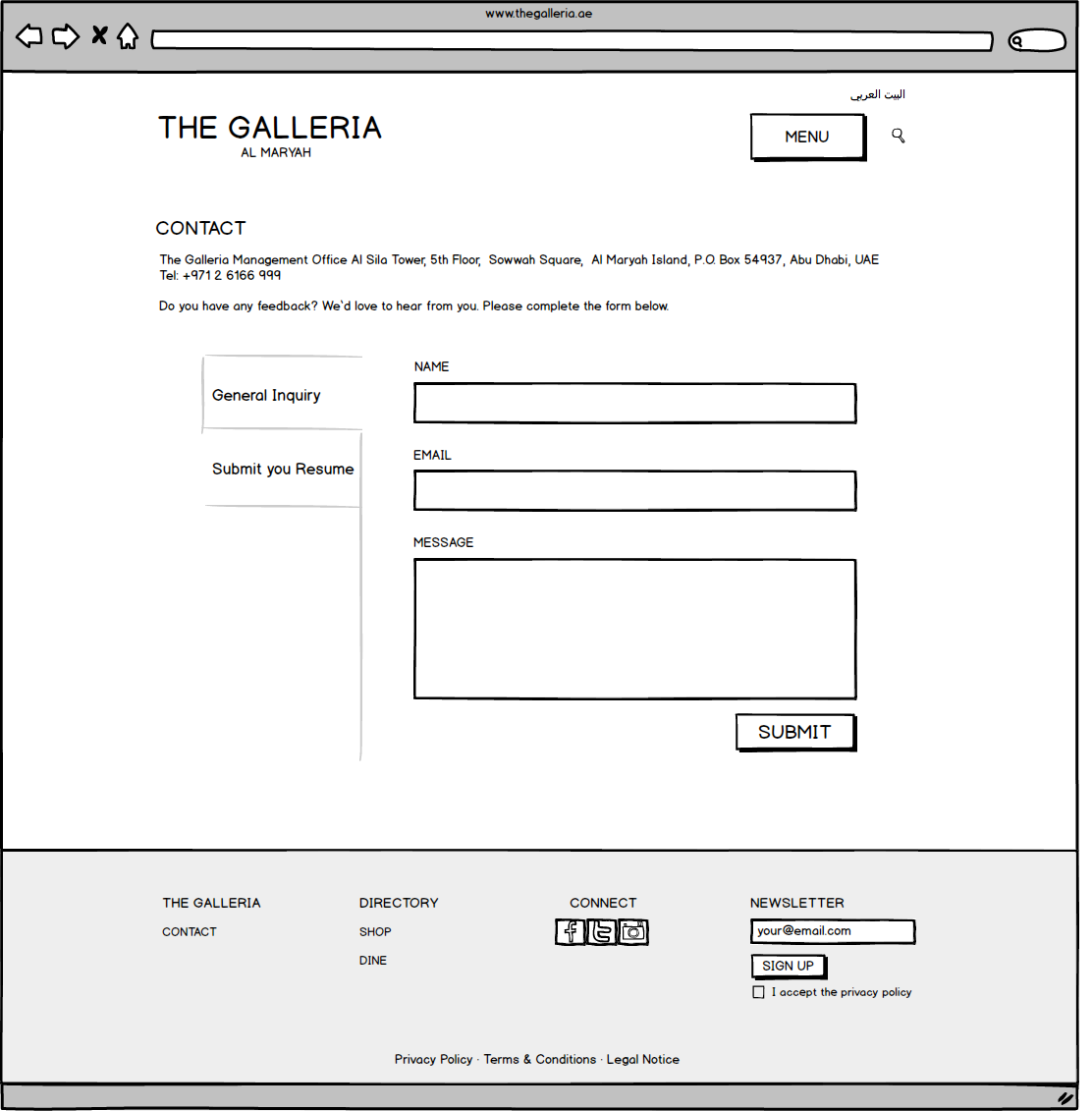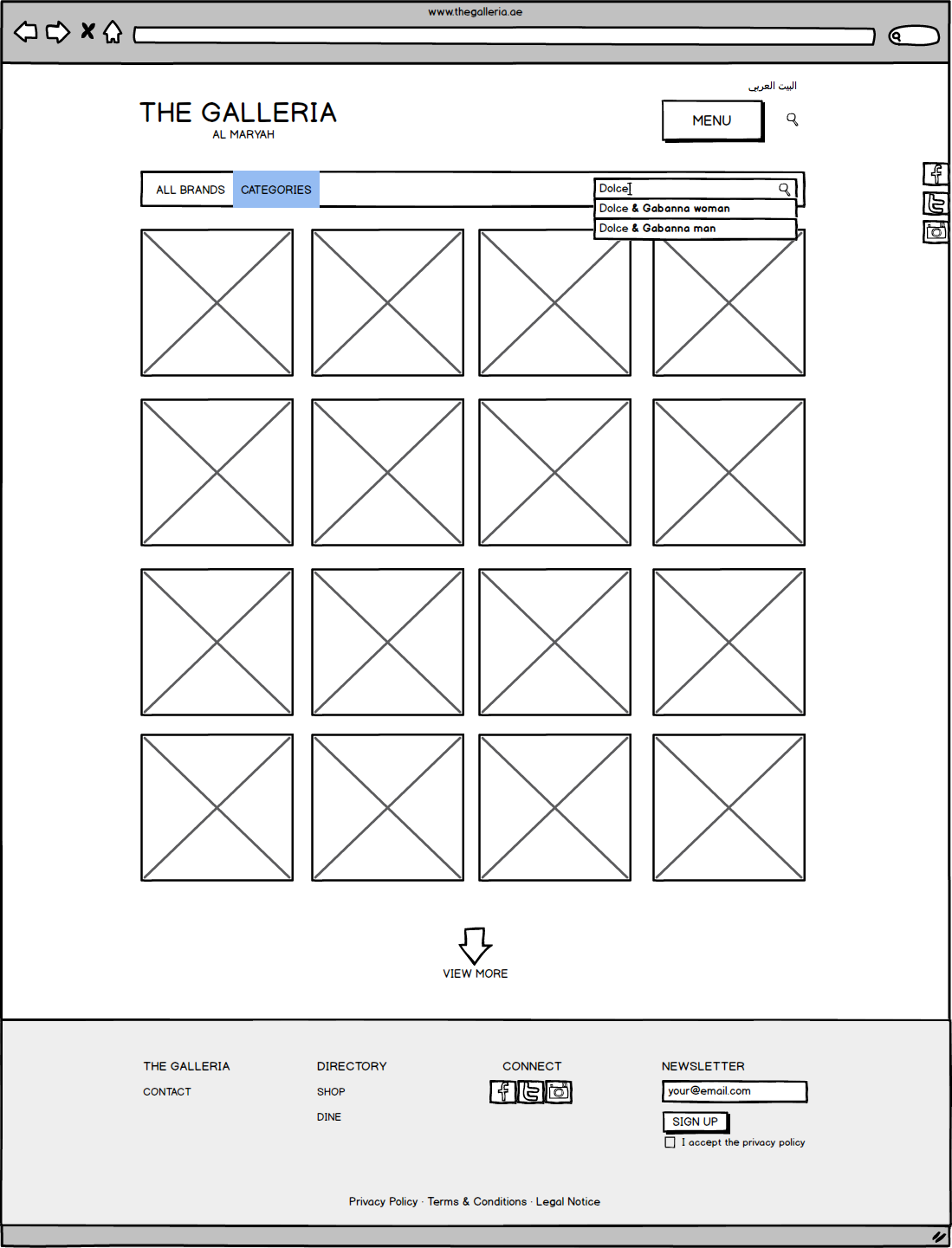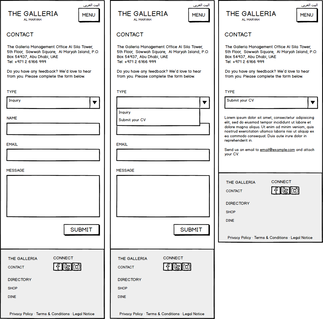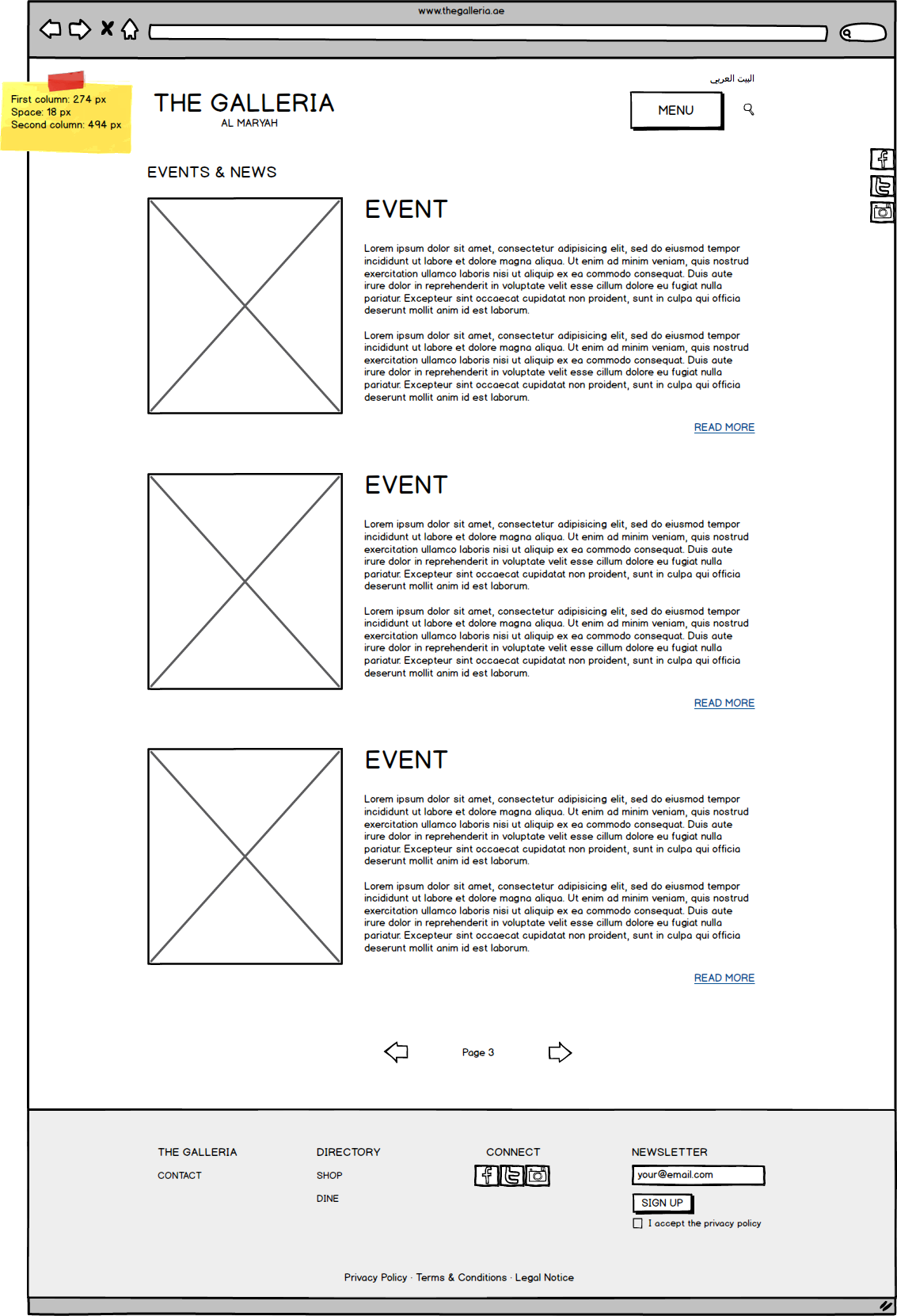 Galleria Mall Website Wireframes