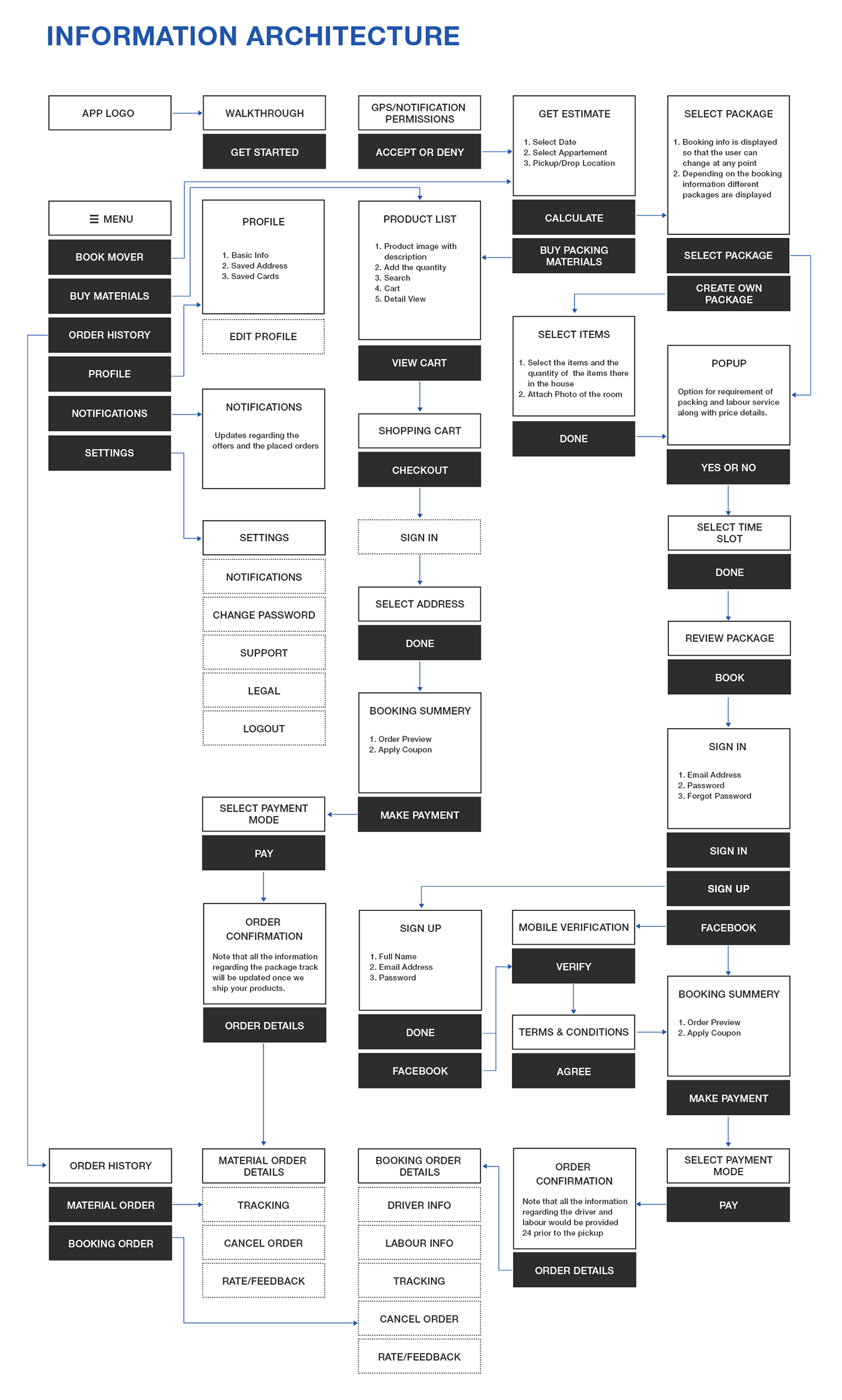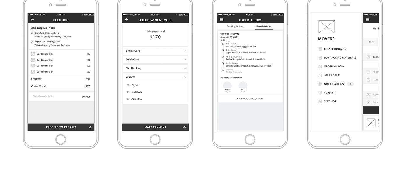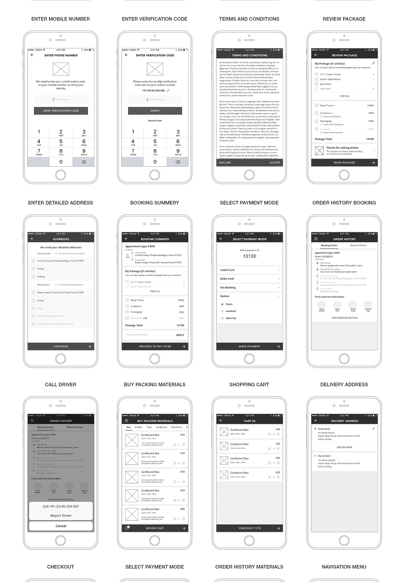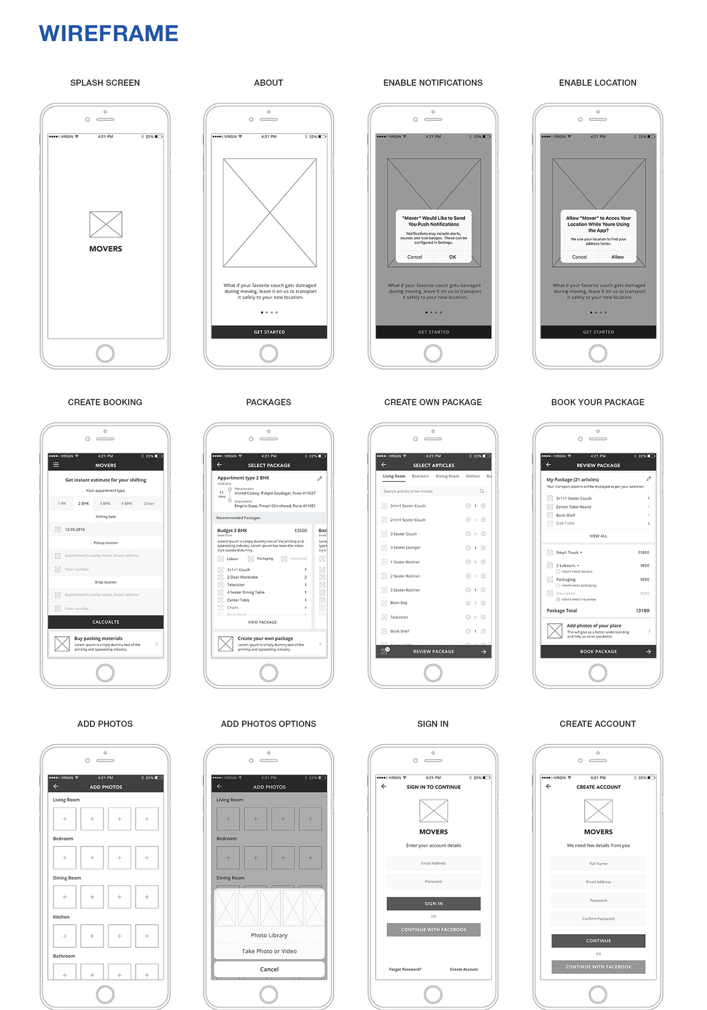 Moverspackers App Wireframes